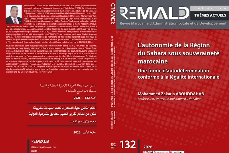 في سياق الحركية الدبلوماسية المتسارعة التي يشهدها ملف الصحراء المغربية، صدر مؤلف أكاديمي جديد يسلط الضوء على مبادرة الحكم الذاتي باعتبارها أحد أبرز الحلول الواقعية المطروحة على المستوى الدولي. ويحمل الكتاب، الصادر عن المجلة المغربية للإدارة المحلية والتنمية، توقيع الباحث محمد زكرياء أبو الذهب، أستاذ القانون والعلاقات الدولية بـجامعة محمد الخامس، حيث يقدم قراءة تحليلية […]