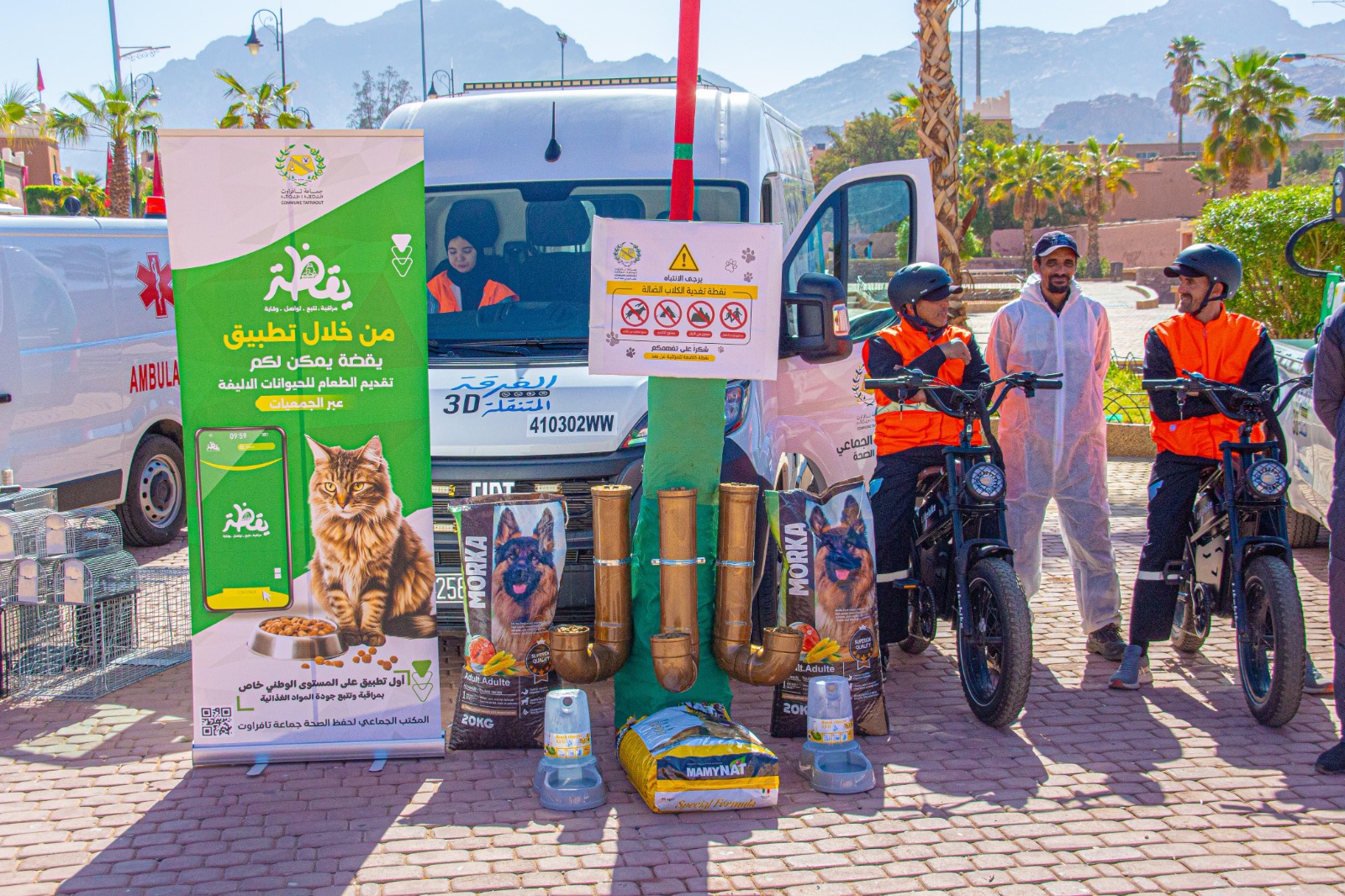 هي تكنولوجيا في خدمة الرفق بالحيوان، فلم يترك المشروع مجالا للصدفة، بل أحيط بمنظومة رقابة متطورة: كاميرات رصد وتتبع عن بعد لمراقبة مراكز التغذية وضمان سير العملية، تخصيص فرسان الميدان وهم فرقة دراجين متأهبة تتولى إيصال الوجبات اليومية بانتظام، في تعاون مثمر مع جمعية “تيليلا” للرفق بالحيوانات‘ إضافة إلى رقمنة الحلول من خلال تطبيق “يقظة” الذكي، الذي يضع التبليغ والتتبع في متناول اليد، مكرسا مبدأ الحكامة الرقمية في التدبير المحلي.