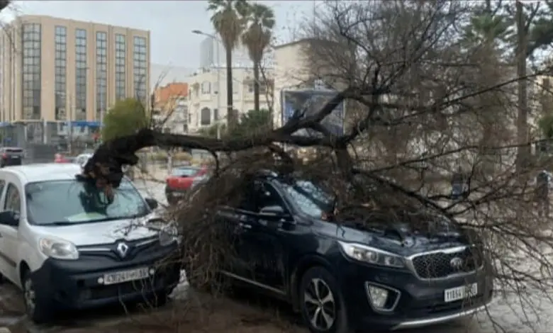 رياح عاتية بفاس.. شجرة تسقط على سيارتين وتلحق أضرارًا مادية