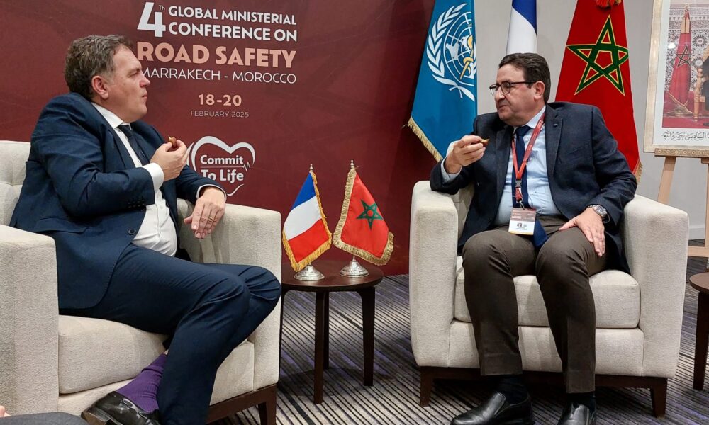 أجرى وزير النقل واللوجيستيك، السيد عبد الصمد قيوح، أمس الإثنين بمراكش، مباحثات مع الوزير المنتدب المكلف بالنقل في الجمهورية الفرنسية، السيد فيليب تابارو، وذلك على هامش انعقاد المؤتمر الوزاري العالمي الرابع حول السلامة الطرقية.